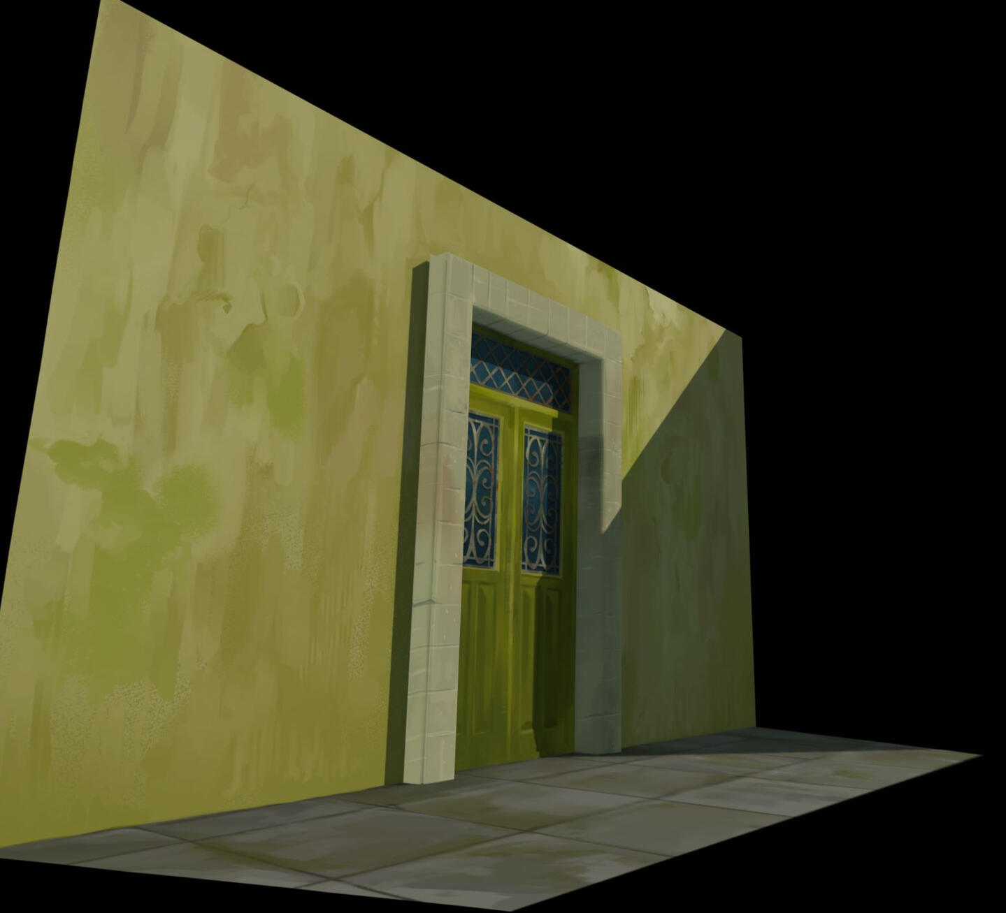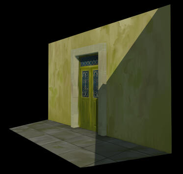 Experimental door model, hand-painted textures made in Clip Studio Paint, model rendered in Blender